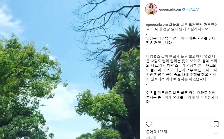 [엑스포츠뉴스 이덕행 기자] 방송인 박은지가 자신의 SNS에 올린 동영상 때문에 과속 논란에 휩싸였다. 하지만 휴대폰의 타임 랩스가 빚어낸 오해로 판명됐다.