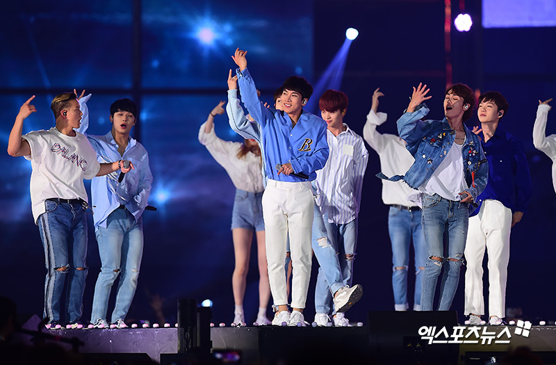 [엑스포츠뉴스 김한준 기자] 2일 오후 서울 구로구 고척스카이돔에서 열린 '2018 코리아 뮤직 페스티벌'에 참석한 비투비가 멋진 공연을 선보이고 있다.
