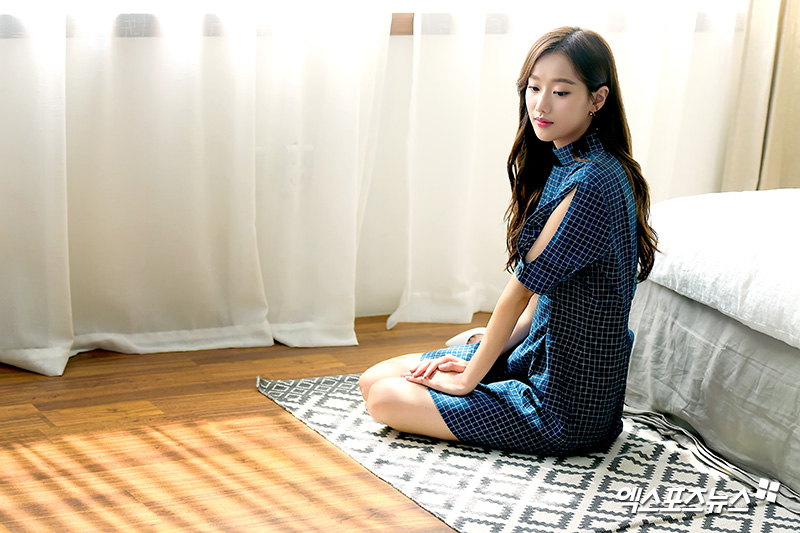 ​[엑스포츠뉴스 서예진 기자] 지난 10일 오후 서울 성산동의 한 스튜디오에서 진행된 엑스포츠뉴스의 인터뷰 '비주얼가이드'에 앞서 에이프릴 나은이 포즈를 취하고 있다.