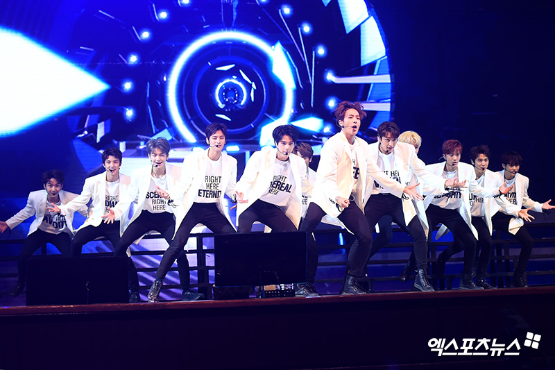 이날 더보이즈가 멋진 무대를 선보이고 있다.