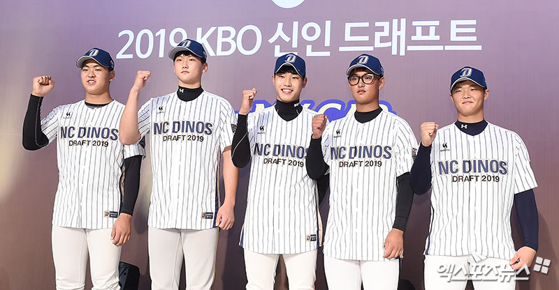 [엑스포츠뉴스 박지영 기자] 10일 오후 서울 소공동 웨스틴조선호텔 그랜드볼룸에서 열린 '2019 KBO 신인 2차 드래프트'에서 NC 다이노스에 지명된 선수들이 기념 촬영을 하고 있다.