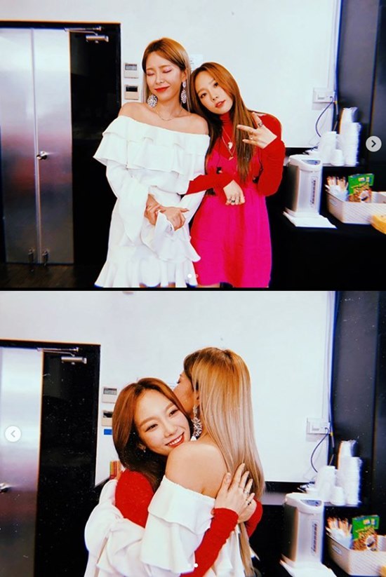 헤이즈는 10일 자신의 인스타그램에 "언니 안아주기를 드디어 했다. 친절하고 다정하고 요정하고 천사하고 따뜻한 태연 선배님과 첫 만남. 잠 안 자고 계속 생각해야지"라는 글과 함께 사진을 게재했다.