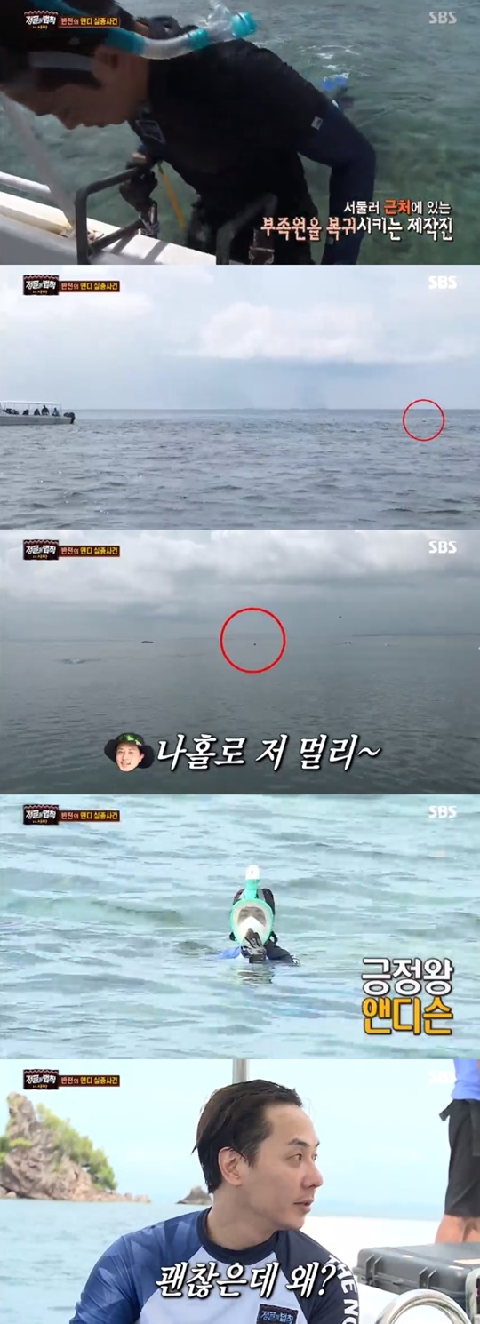 모두의 걱정과 달리, 앤디는 "오히려 나는 되게 행복했다. 배는 어차피 오니까. 계속 헤엄을 치다가 포기했다. 힐링하는 시간이었다"고 말해 웃음을 자아냈다.