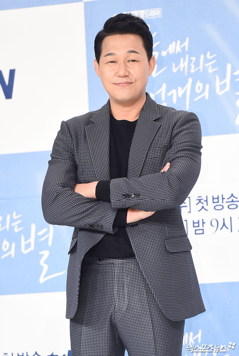 [엑스포츠뉴스 박지영 기자] 28일 오후 서울 영등포구 타임스퀘어에서 열린 tvN 새 수목드라마 '하늘에서 내리는 일억개의 별' 제작발표회에 참석한 배우 박성웅이 포즈를 취하고 있다.