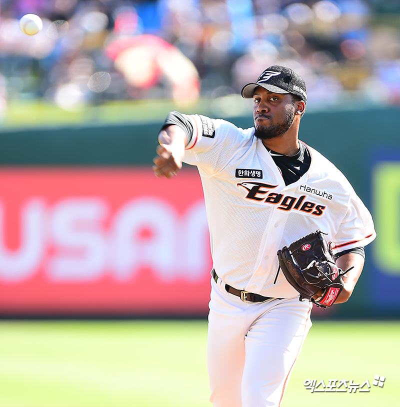 [엑스포츠뉴스 대전, 김한준 기자] 3일 오후 대전광역시 중구 한화생명이글스파크에서 열린 '2018 신한은행 MY CAR KBO리그' 롯데 자이언츠와 한화 이글스의 경기, 1회초 한화 선발투수 샘슨이 공을 힘차게 던지고 있다.