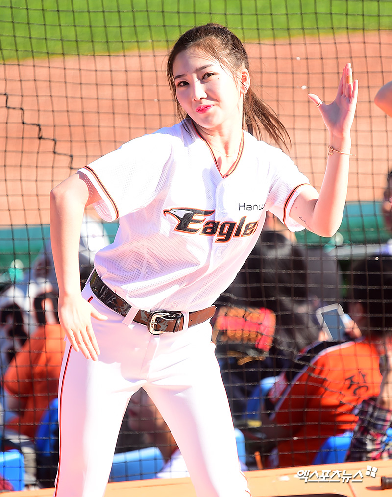 [엑스포츠뉴스 대전, 김한준 기자] 3일 오후 대전광역시 중구 한화생명이글스파크에서 열린 '2018 신한은행 MY CAR KBO리그' 롯데 자이언츠와 한화 이글스의 경기, 한화 치어리더 조아련이 멋진 공연을 선보이고 있다.