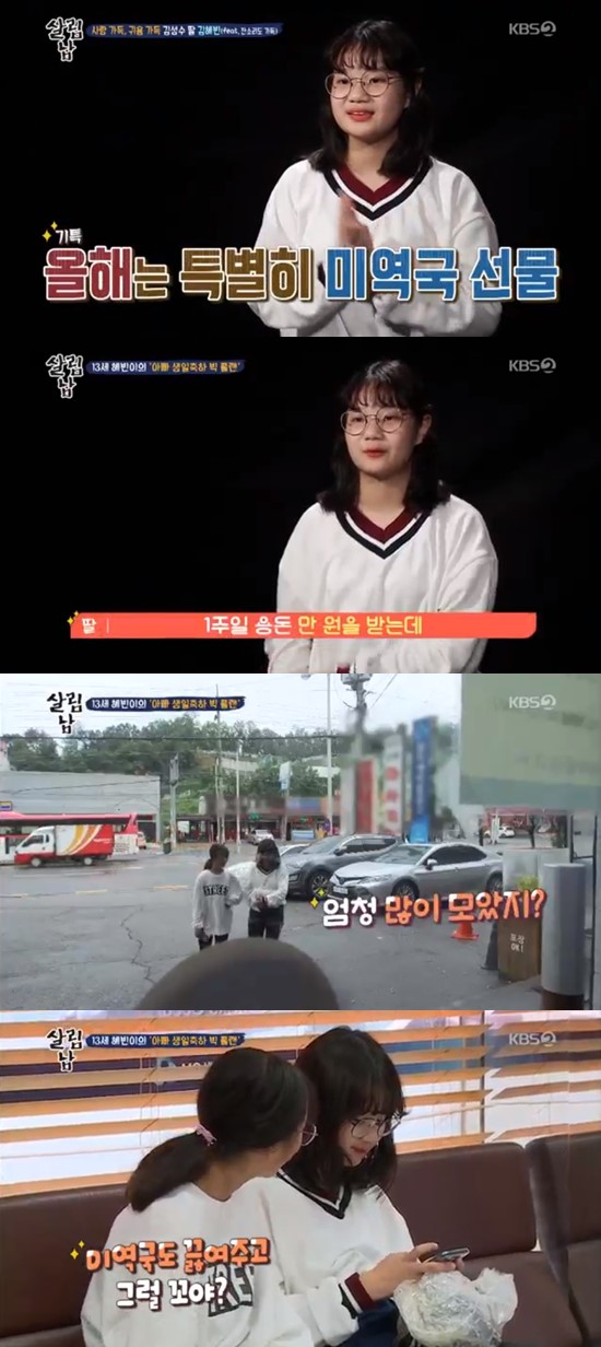 이후 김성수 딸은 은행에서 동전을 지페로 바꿨고, 친구의 도움을 받아 생일파티를 준비했다.