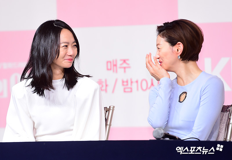 [엑스포츠뉴스 김한준 기자] 5일 오후 서울 영등포동 타임스퀘어 아모리스홀에서 열린 KBS 2TV 새 월화드라마 '최고의 이혼' 제작발표회에 참석한 배두나와 이엘이 대화를 나누고 있다.