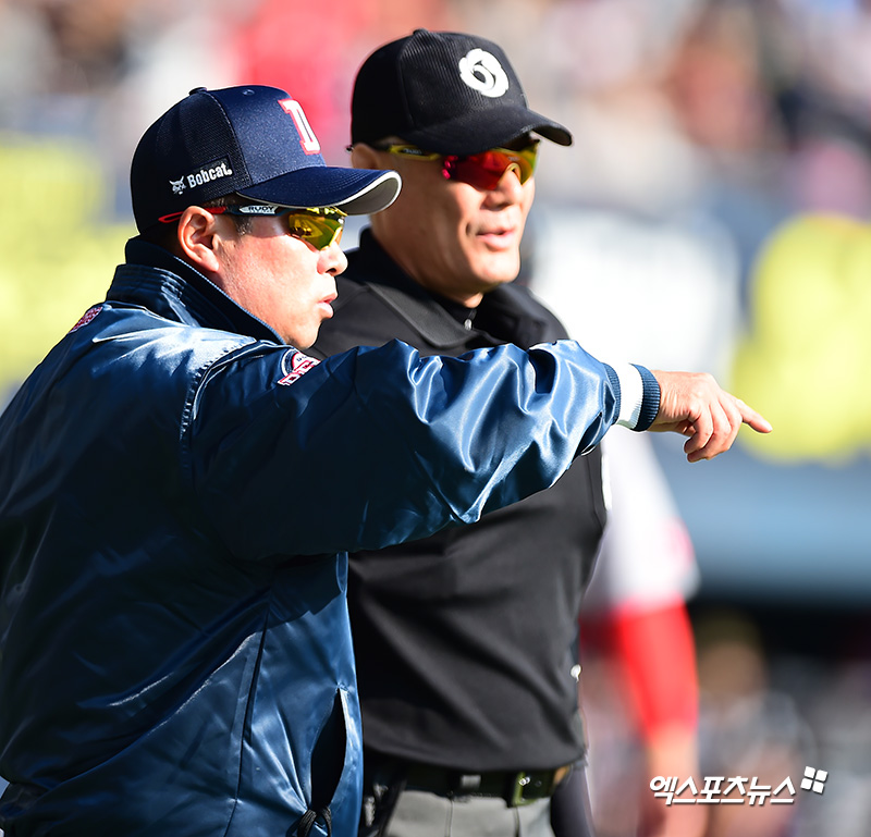 김태형 감독 '콜이 잘못되었잖아요'[포토]