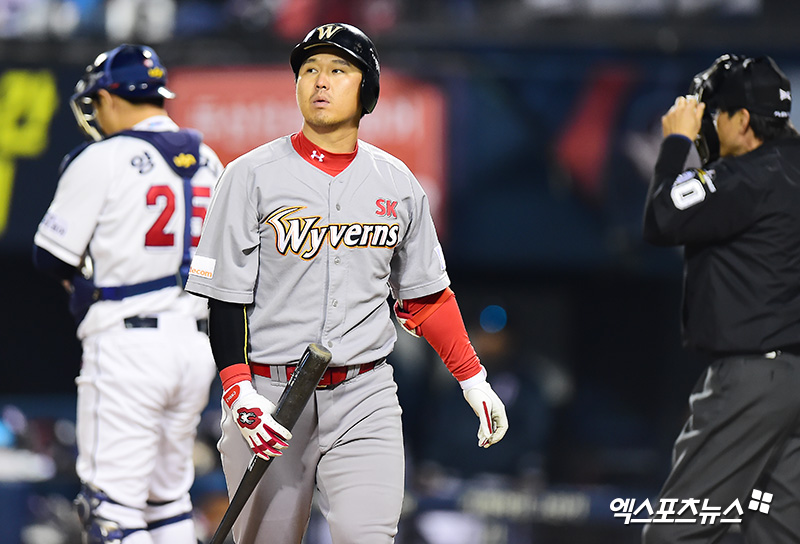최정 '한국시리즈 첫 타석은 헛스윙 삼진'[포토]