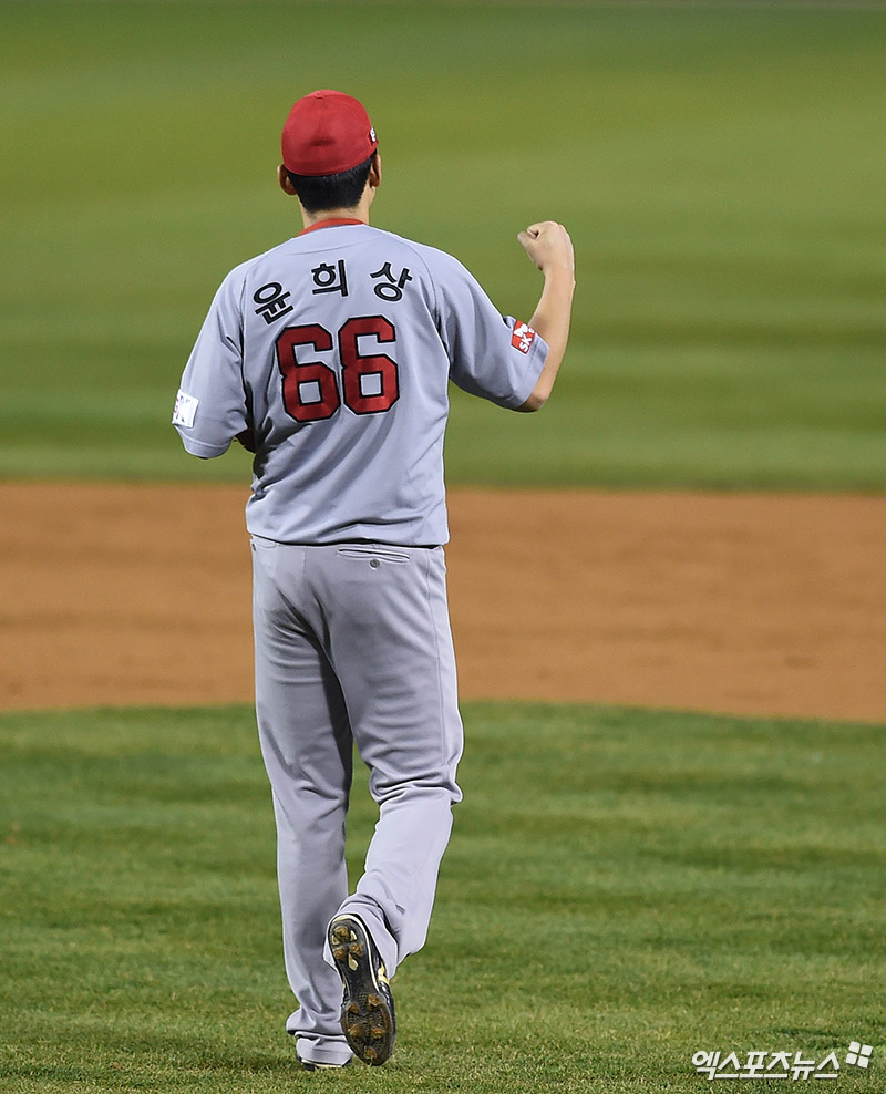 윤희상 '김강민 호수비에 주먹 불끈'[포토]