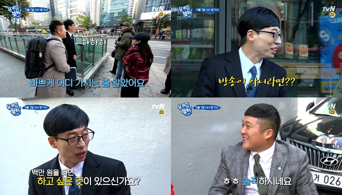한 시민은 100만원 상금을 타면 무엇을 할 것이냐는 질문에 각종 브랜드를 나열하며 유재석과 조세호를 웃음에 빠뜨린다. 이어 자신의 위치는 갑, 을, 병, 정 중 정에 해당한다고 하는 시민 등 너무나 솔직한 시민들이 연속 등장해 큰 웃음을 선사할 예정이다.