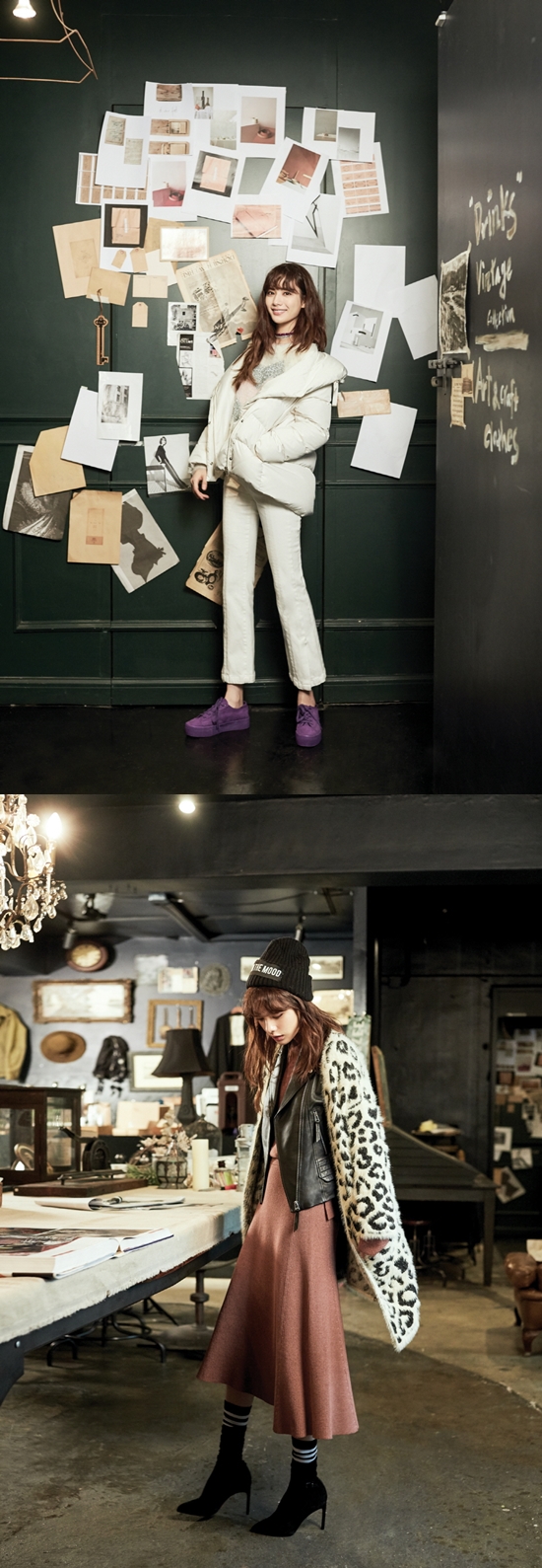 다른 화보에서 나나는 화사한 컬러감의 숏 패딩을 입어 여성스럽고 청순한 느낌을 배가했으며, 가죽 재킷에 호피 무늬 카디건을 걸치고 비니로 포인트를 줘 남다른 패션 센스를 뽐냈다.