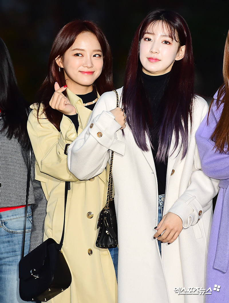 [엑스포츠뉴스 김한준 기자] 16일 오전 서울 여의도동 KBS 신관 공개홀에서 진행된 KBS '뮤직뱅크' 리허설에서 구구단 세정, 하나가 포토타임을 갖고 있다.