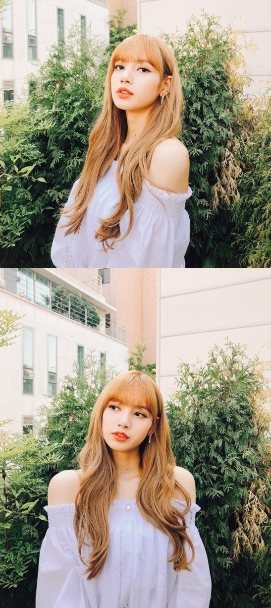 공개된 사진 속 리사는 오프숄더 블라우스를 입고 다양한 포즈를 취하고 있다. 긴 웨이브 헤어를 연출한 리사는 귀걸이와 목걸이를 착용해 청순한 분위기를 배가했다.