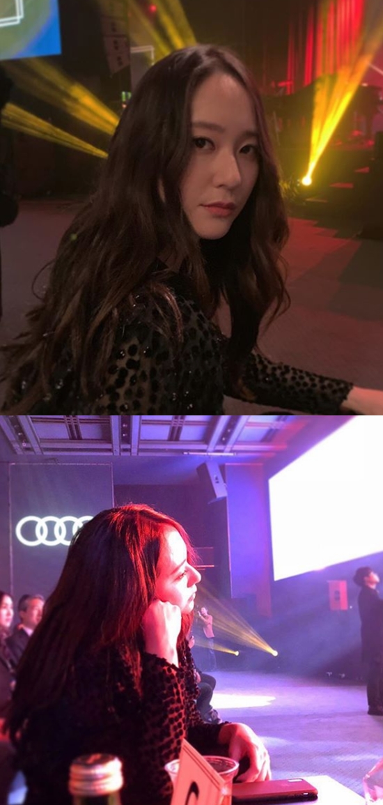 게재된 사진 속 크리스탈은 '아우디 코리아'에서 개최한 재즈공연에 참석했다. 공연을 감상하는 크리스탈은 높은 콧대를 자랑해 시선을 사로잡았다.