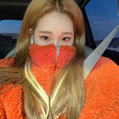사진 속 주이는 주황색 후리스를 입은 채 카메라를 응시하고 있다. 후리스로 얼굴은 가렸지만 귀여움은 가릴 수 없었다.