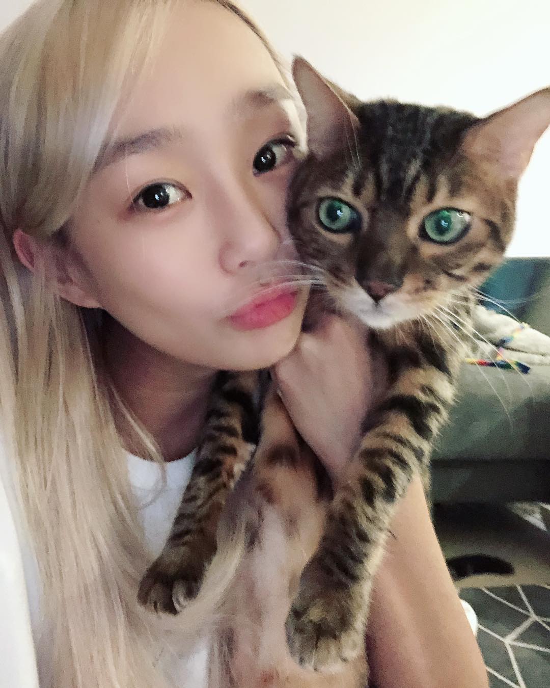 사진 속 효린은 자신의 반려묘 심바를 안고 다정하게 셀카를 찍는 모습이다. 완벽한 생얼을 자랑하며 수수한 매력을 뽐내는 효린의 모습이 눈길을 끈다.