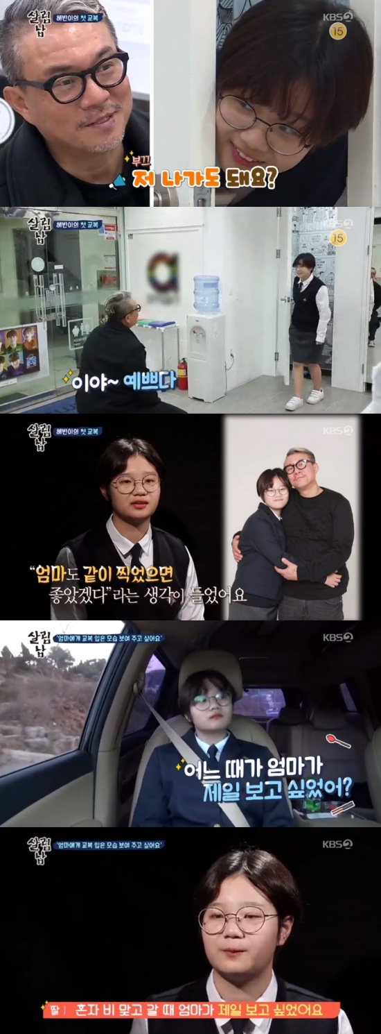 이날 김성수는 중학교 입학을 앞둔 딸 김혜빈을 교복 가게로 데려갔다. 김혜빈은 탈의실로 들어가 교복을 입었고, 김성수는 "제복이라는 걸 처음 입는데 어떤 모습일까 설렘이 제일 컸던 거 같다"라며 기대했다.