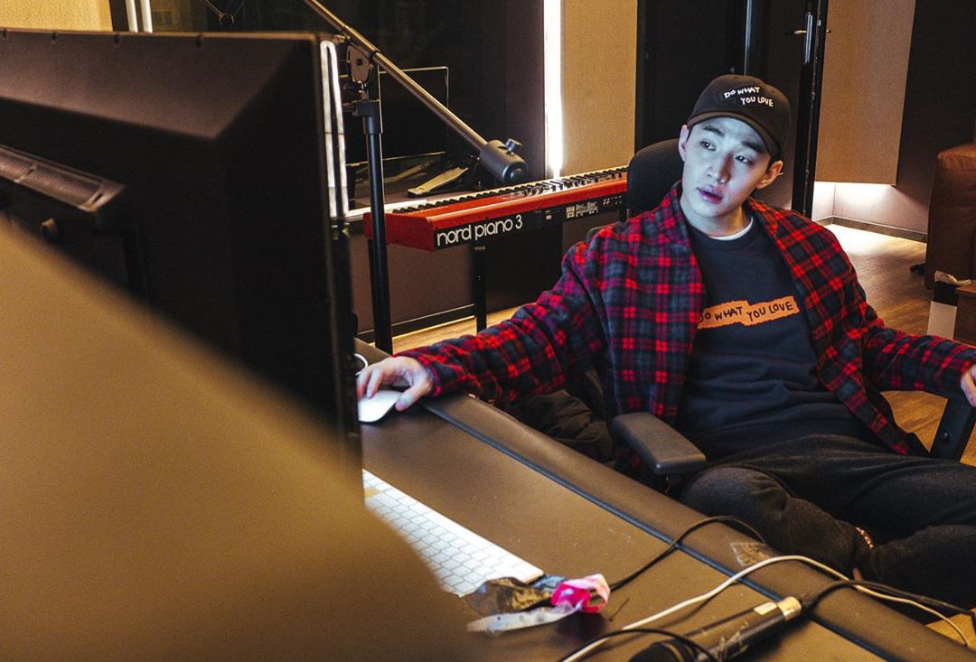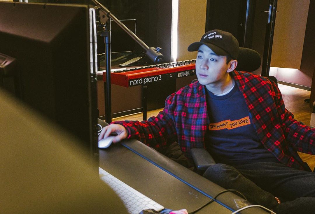 사진 속 헨리는 음악 작업실에 앉아 진지한 표정으로 곡 작업에 몰두하고 있는 모습이다.