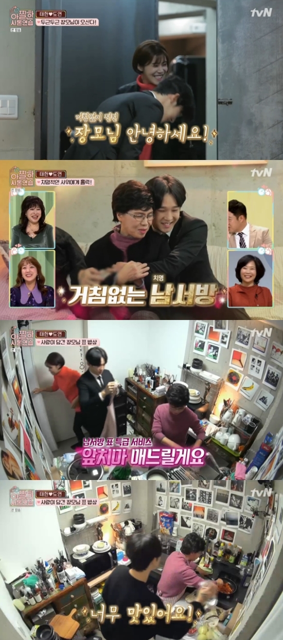 21일 방송된 tvN '아찔한 사돈연습'에는 남태현이 장도연의 어머니와 첫 만남을 갖는 모습이 방송됐다.
