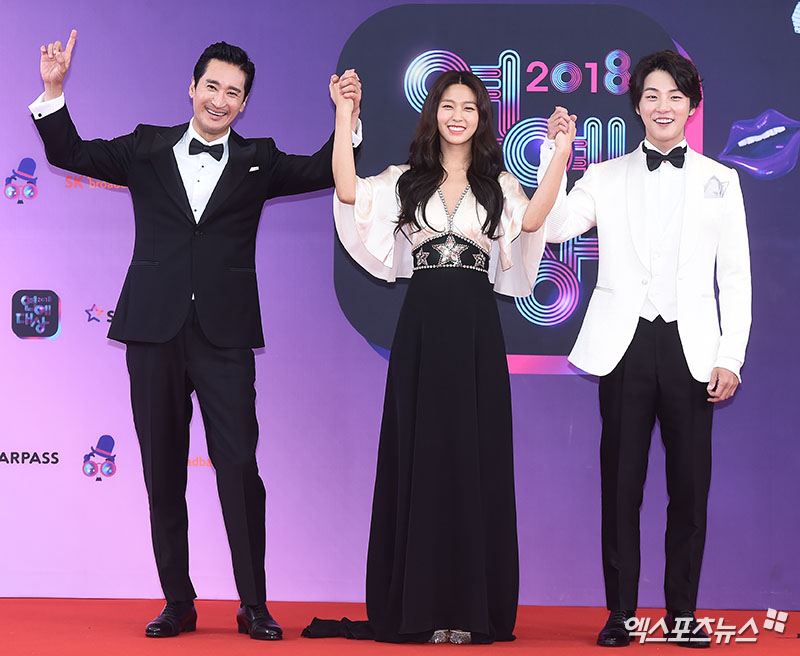 [엑스포츠뉴스 박지영 기자] 22일 오후 서울 여의도동 KBS본관 시청자광장에서 열린 '2018 KBS 연예대상' 레드카펫 행사에 참석한 신현준, 설현, 윤시윤이 포즈를 취하고 있다.
