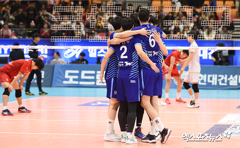 [엑스포츠뉴스 인천, 윤다희 기자] 24일 오후 인천 계양체육관에서 열린 2018-2019 도드람 V리그 흥국생명과 인삼공사의 여자부 경기,  대한항공이 한국전력에 세트스코어 3:2(22-25, 25-14, 24-26, 25-19, 15-8)로 역전승을 거뒀다.