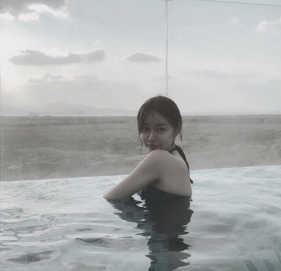사진 속 유나는 물 속에서 카메라를 응시하고 있다. 유나는 검정색 수영복을 입고 가녀린 어깨와 팔 라인을 뽐냈다. 옅은 미소로 우아한 매력을 더했다.