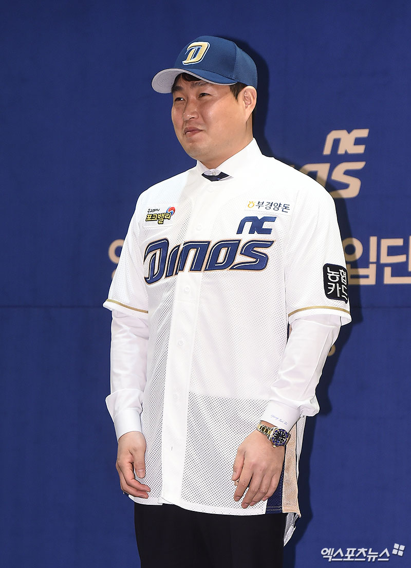 [엑스포츠뉴스 창원, 박지영 기자] 8일 오후 경상남도 창원시 마산합포구 사보이호텔에서 양의지의 NC 다이노스 입단식이 열렸다.