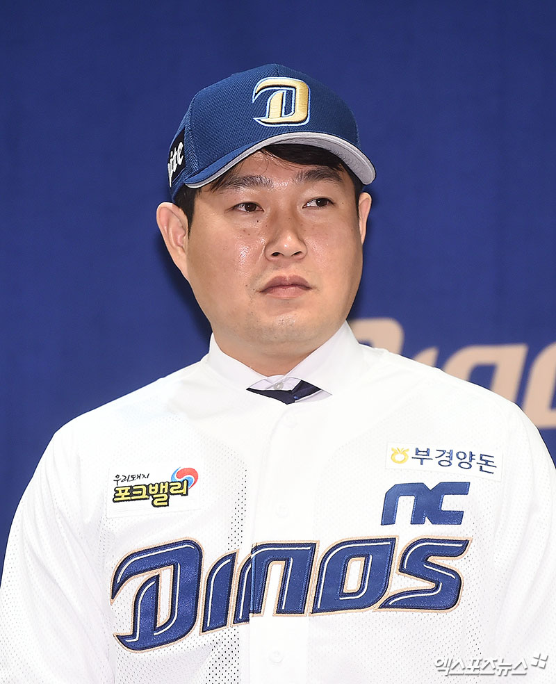 [엑스포츠뉴스 창원, 박지영 기자] 8일 오후 경상남도 창원시 마산합포구 사보이호텔에서 양의지의 NC 다이노스 입단식이 열렸다.