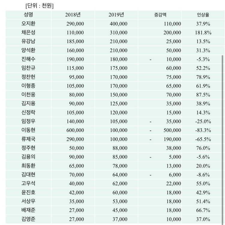 [엑스포츠뉴스 채정연 기자] LG 트윈스 채은성이 팀 내 최고 인상률을 기록했다.
