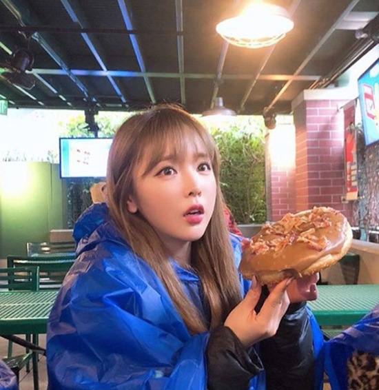 공개된 사진 속 홍진영은 파란색 우비를 쓰고 자신의 얼굴보다 큰 빵을 들고 있다. 홍진영의 당황한 모습이 눈길을 사로잡는다. 홍진영은 이외에도 자신의 스태프들과 함께한 다양한 모습을 공개했다.