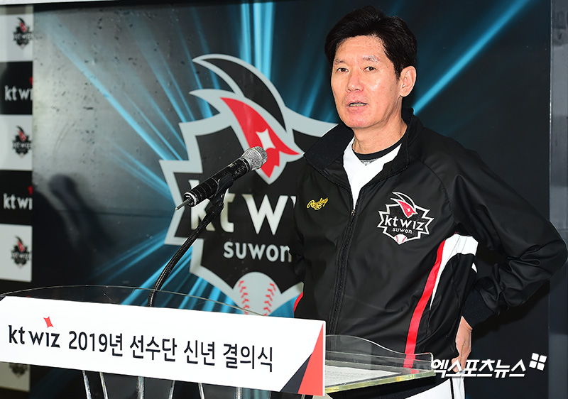 [엑스포츠뉴스 수원, 김한준 기자] 22일 오전 경기도 수원시 장안구 수원kt위즈파크에서 열린 'kt위즈 2019 선수단 신년 결의식'에 참석한 이강철 감독이 새 시즌 각오를 밝히고 있다.