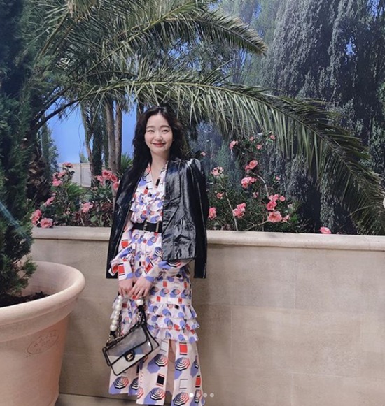 김고은은 22일 자신의 인스타그램에 여러 장의 사진을 게재했다. 공개된 사진 속 김고은은 화려한 패턴의 원피스 위에 검은 재킷을 걸친 채 포즈를 취하고 있다.