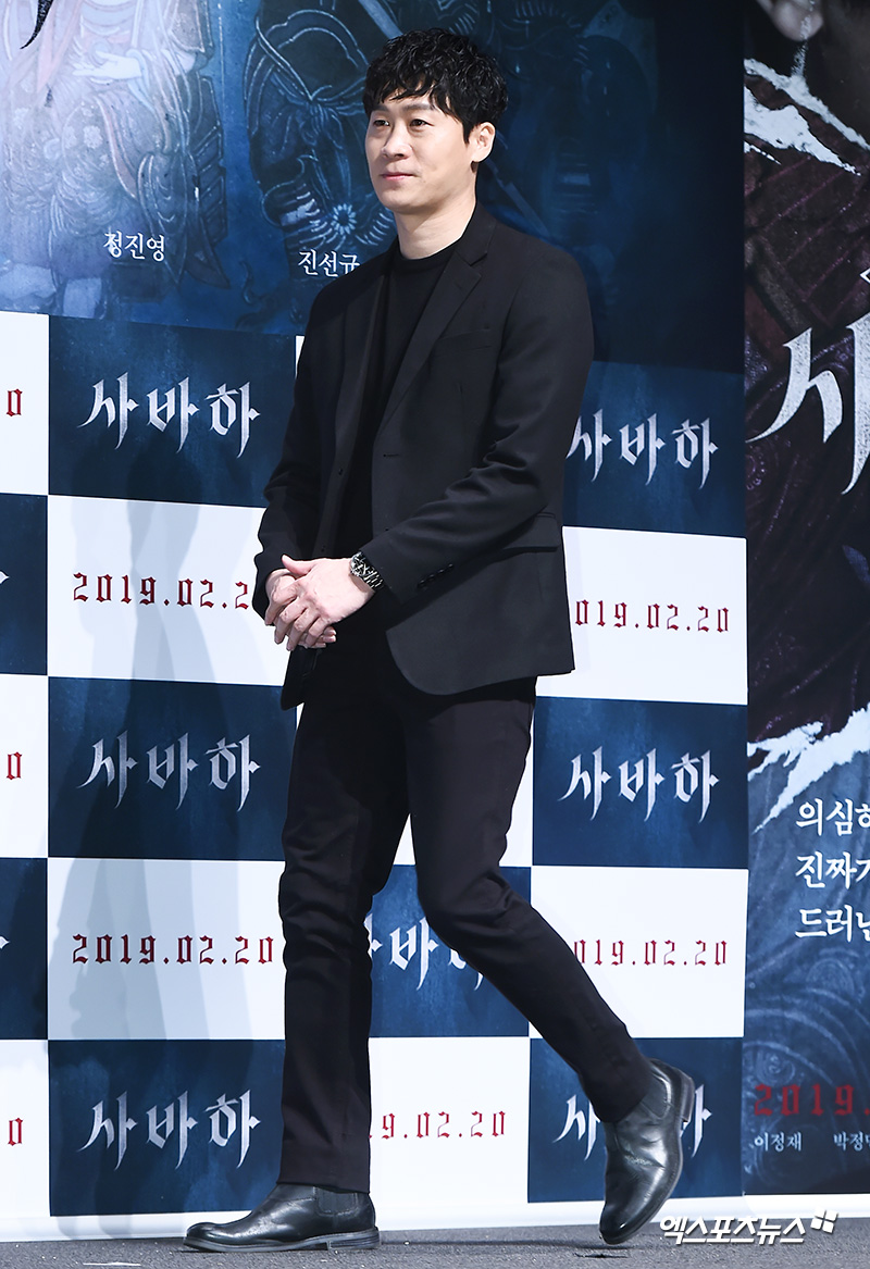 [엑스포츠뉴스 윤다희 기자] 25일 오전 서울 신사동 CGV 압구정점에서 열린 영화 '사바하' 제작보고회에 참석한 배우 진선규가 포토타임을 갖고 있다.