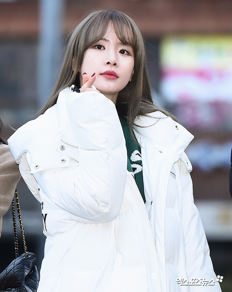 [엑스포츠뉴스 윤다희 기자] 1일 오전 서울 여의도동 KBS 신관 공개홀에서 진행된 KBS '뮤직뱅크' 리허설에서 우주소녀 설아가 포토타임을 갖고 있다.