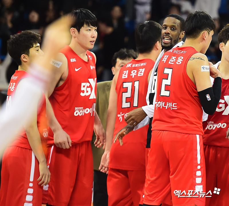 ​[엑스포츠뉴스 잠실학생체, 김한준 기자] 9일 오후 서울 송파구 잠실학생체육관에서 열린 '2018-2019 SKT 5GX 프로농구' 서울 SK와 창원 LG의 경기, SK가 LG에 84:72로 승리를 거뒀다.