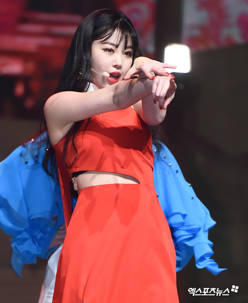 [엑스포츠뉴스 윤다희 기자] 26일 오후 서울 한남동 블루스퀘어에서 열린 (여자)아이들 두 번째 미니앨범 ‘I made’ 쇼케이스에 참석한 (여자)아이들 수진이 멋진 무대를 선보이고 있다.