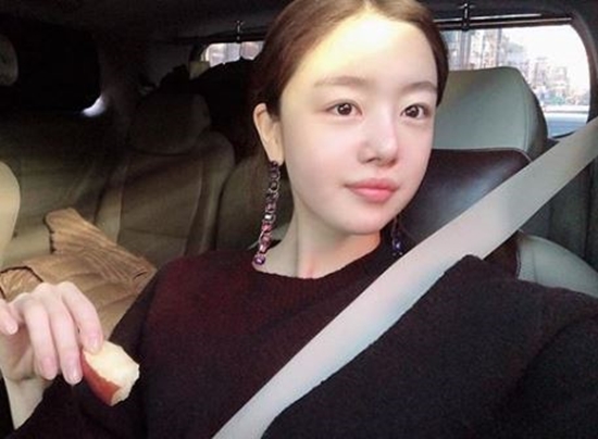 27일 한선화는 자신의 인스타그램에 "사과 먹는 부은 토끼"라는 글과 함께 사진 한 장을 게재했다.