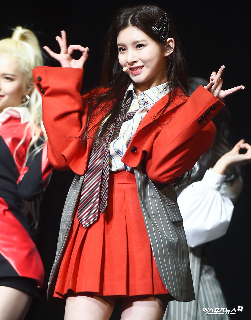 [엑스포츠뉴스 윤다희 기자] 18일 오후 서울 광장동 예스24라이브홀에서 열린 6인조 걸그룹 에버글로우(EVERGLOW) 데뷔 앨범 ‘ARRIVAL OF EVERGLOW’ 쇼케이스에 참석한 에버글로우 시현, 이런이 멋진 무대를 선보이고 있다.