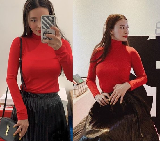 게재된 사진 속 황보는 거울에 비친 자신의 모습을 촬영하고 있다. 황보는 몸매 라인이 드러나는 빨간색 상의에 검은색 플리츠 스커트를 입고 남다른 패션 감각을 뽐냈다. 다른 사진 속 황보는 작은 얼굴과 큰 눈, 오똑한 콧대로 인형 같은 비주얼을 뽐냈다.