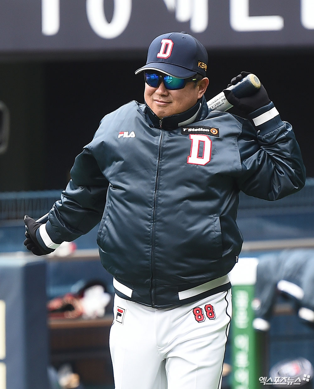 [엑스포츠뉴스 잠실, 박지영 기자] 23일 오후 서울 송파구 잠실야구장에서 열리는 '2019 신한은행 MY CAR KBO리그' 한화 이글스와 두산 베어스의 개막전 경기에 앞서 두산 김태형 감독이 그라운드로 나서고 있다.