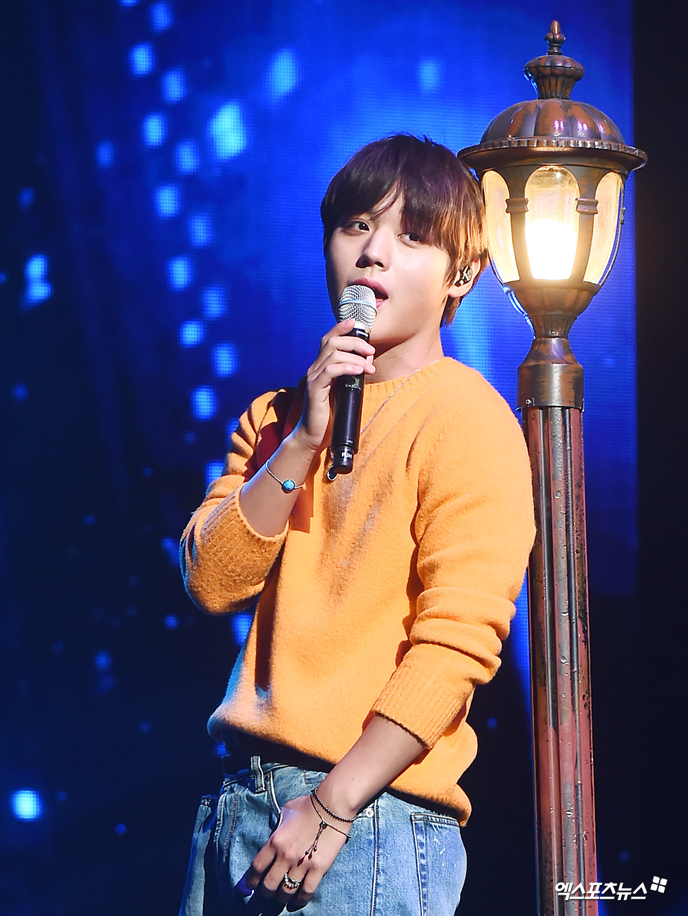 [엑스포츠뉴스 윤다희 기자] 26일 오후 홍지동 상명아트센터에서 열린 워너원 출신 가수 박지훈 솔로 데뷔앨범 ‘O’CLOCK’ 쇼케이스에 참석한 박지훈이 멋진 무대를 선보이고 있다.
