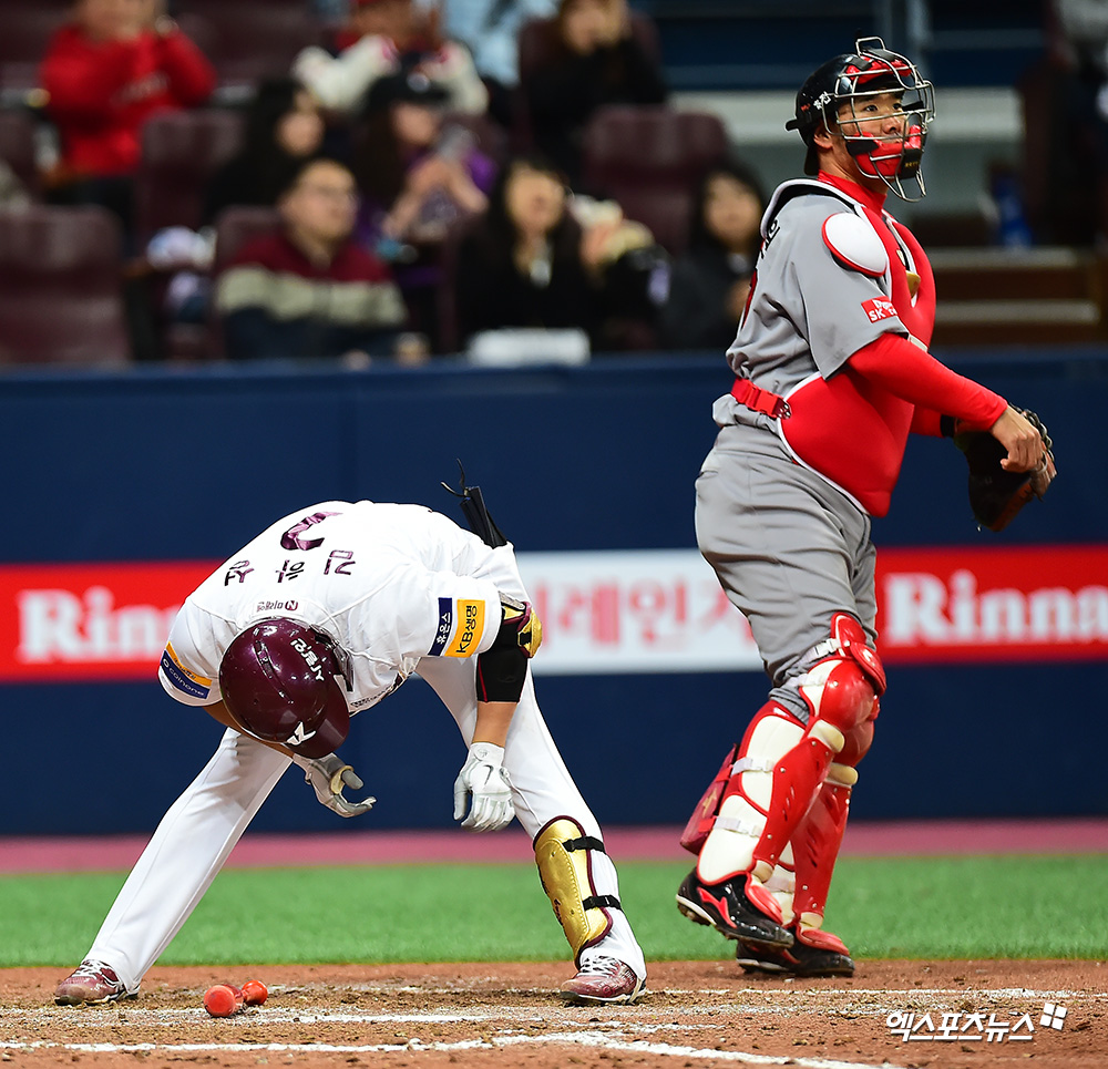 [엑스포츠뉴스 고척, 김한준 기자] 30일 오후 서울 구로구 고척스카이돔에서 열린 '2019 신한은행 MY CAR KBO리그 SK 와이번스와 키움 히어로즈의 경기, 5회말 2사 1,2루 키움 김하성이 루킹 삼진을 당한 후 아쉬워하고 있다.