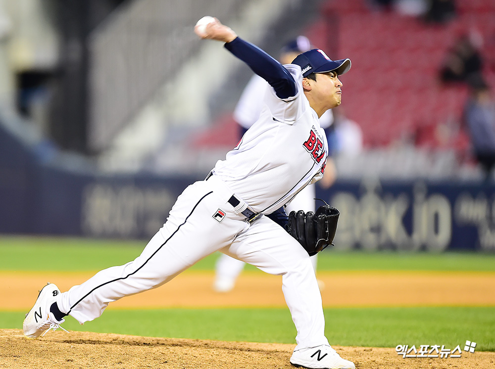 [엑스포츠뉴스 잠실, 김한준 기자] 2일 오후 서울 송파구 잠실야구장에서 열린 '2019 신한은행 MY CAR KBO리그 KT 위즈와 두산 베어스의 경기, 7회초 두산 이형범이 공을 힘차게 던지고 있다.