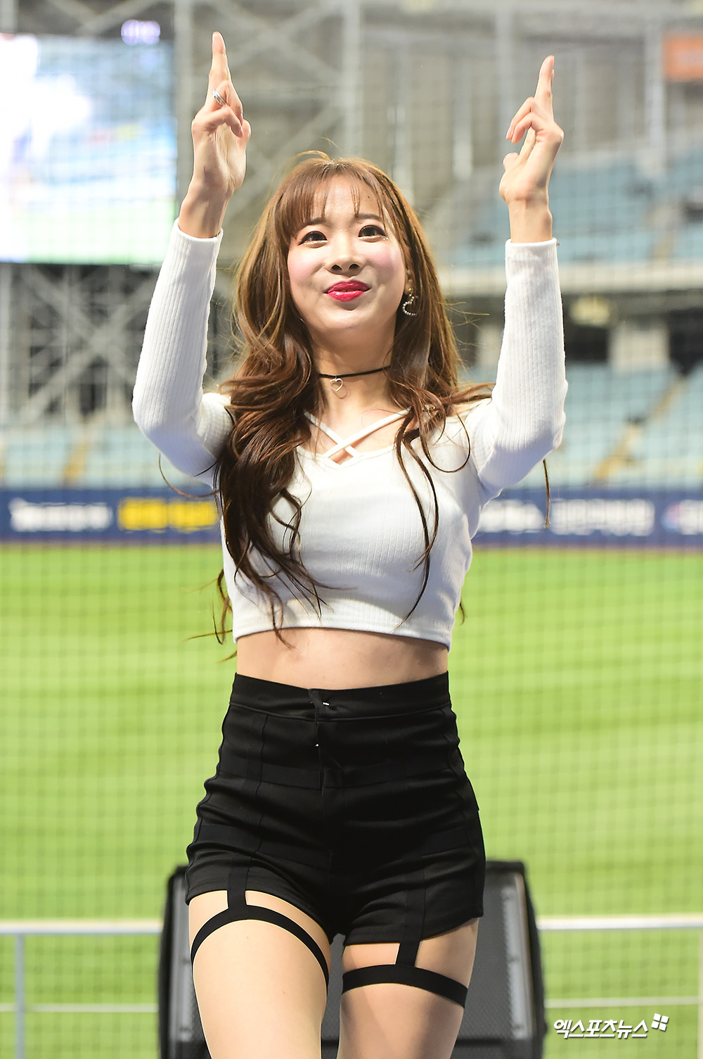 [엑스포츠뉴스 고척, 김한준 기자] 9일 오후 서울 구로구 고척스카이돔에서 열린 '2019 신한은행 MY CAR KBO리그 KT 위즈와 키움 히어로즈의 경기, 키움 치어리더 김한나가 멋진 공연을 선보이고 있다.
