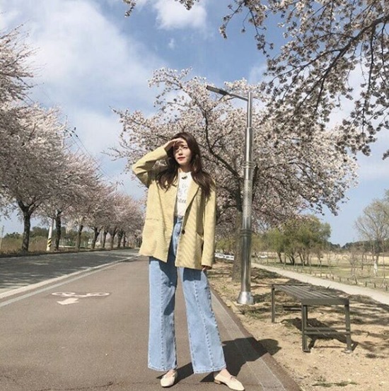 정시아는 11일 자신의 인스타그램에 한 장의 사진을 게재했다. 공개된 사진 속 정시아는 벚꽃이 가득한 거리 위에서 포즈를 취하고 있다.