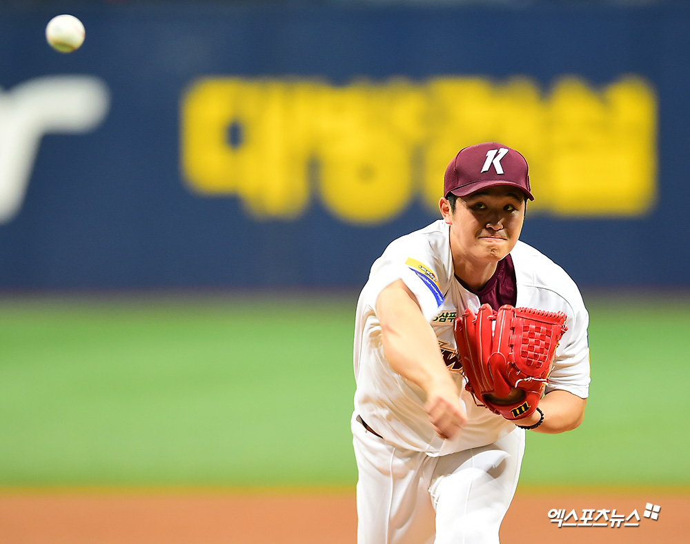 [엑스포츠뉴스 고척, 김한준 기자] 13일 오후 서울 구로구 고척스카이돔에서 열린 '2019 신한은행 MY CAR KBO리그 한화 이글스와 키움 히어로즈의 경기, 1회초 키움 선발투수 최원태가 공을 힘차게 던지고 있다.