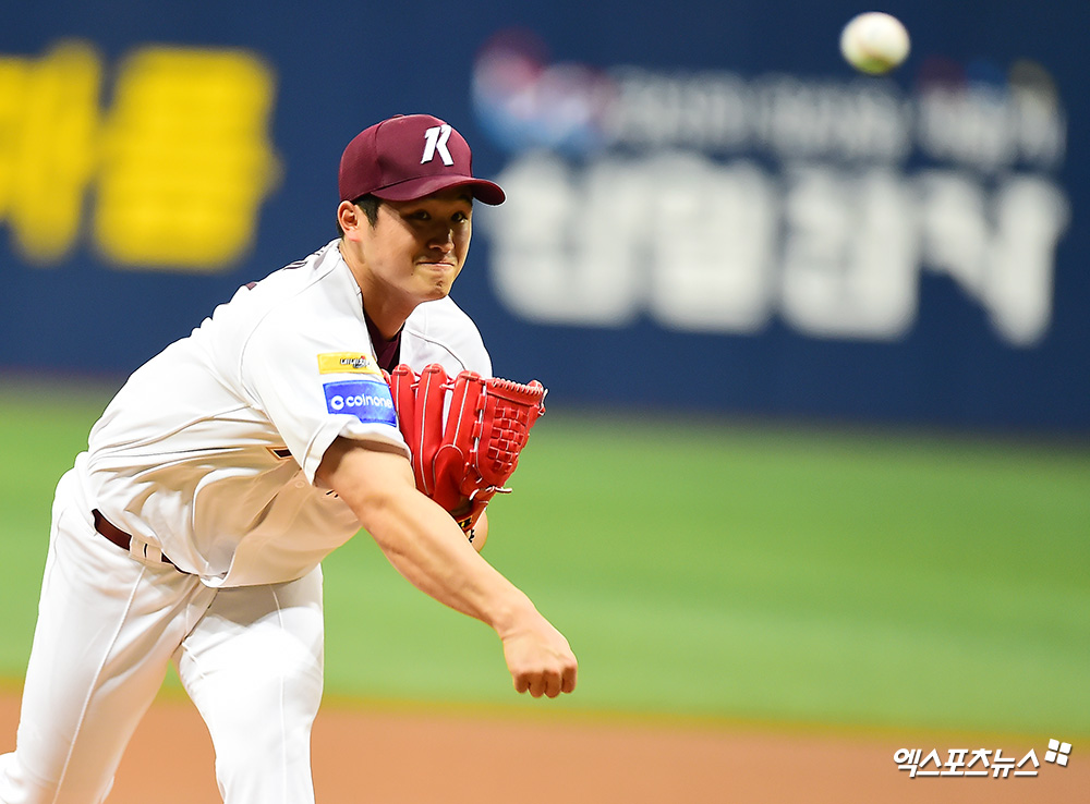 [엑스포츠뉴스 고척, 김한준 기자] 13일 오후 서울 구로구 고척스카이돔에서 열린 '2019 신한은행 MY CAR KBO리그 한화 이글스와 키움 히어로즈의 경기, 1회초 키움 선발투수 최원태가 공을 힘차게 던지고 있다.