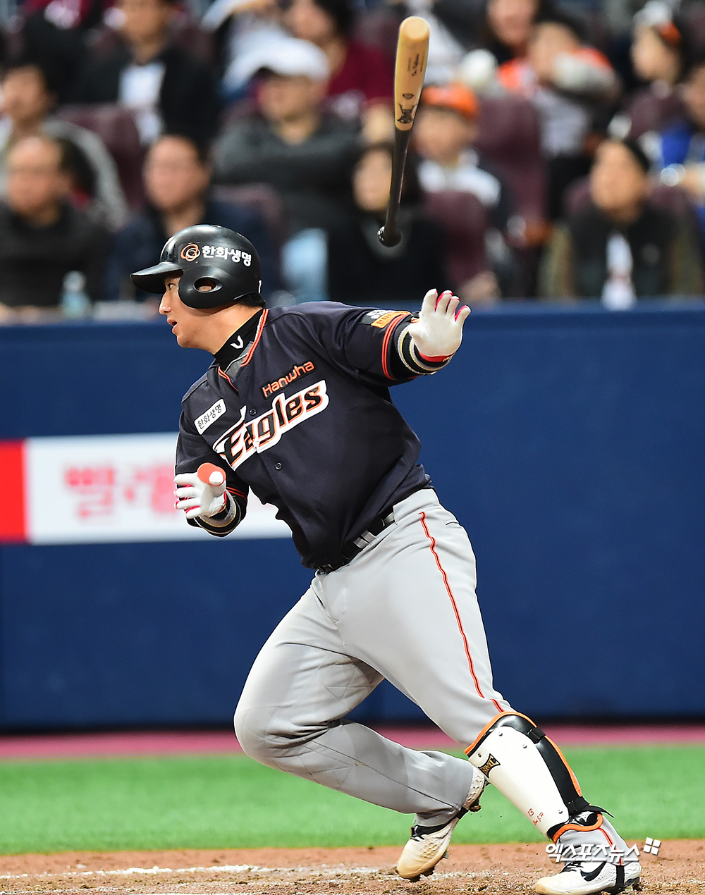 [엑스포츠뉴스 고척, 김한준 기자] 14일 오후 서울 구로구 고척스카이돔에서 열린 '2019 신한은행 MY CAR KBO리그 한화 이글스와 키움 히어로즈의 경기, 8회초 2사 1루 한화 최재훈이 우전안타를 날리고 있다.